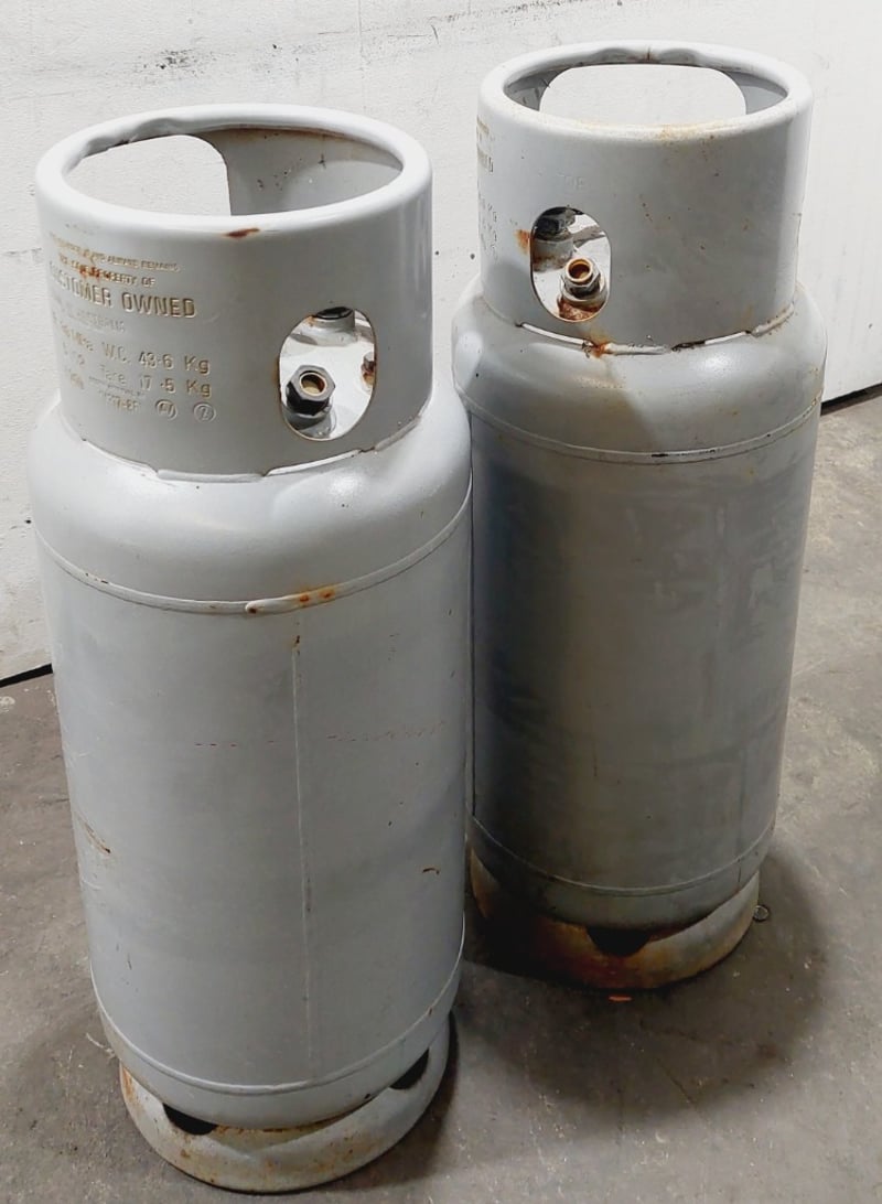 LPG (Liquid Petroleum Gas) forklift tanks, which are specialized propane cylinders designed for use on forklift trucks.