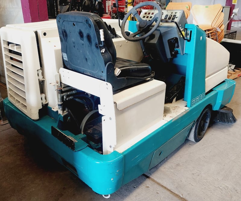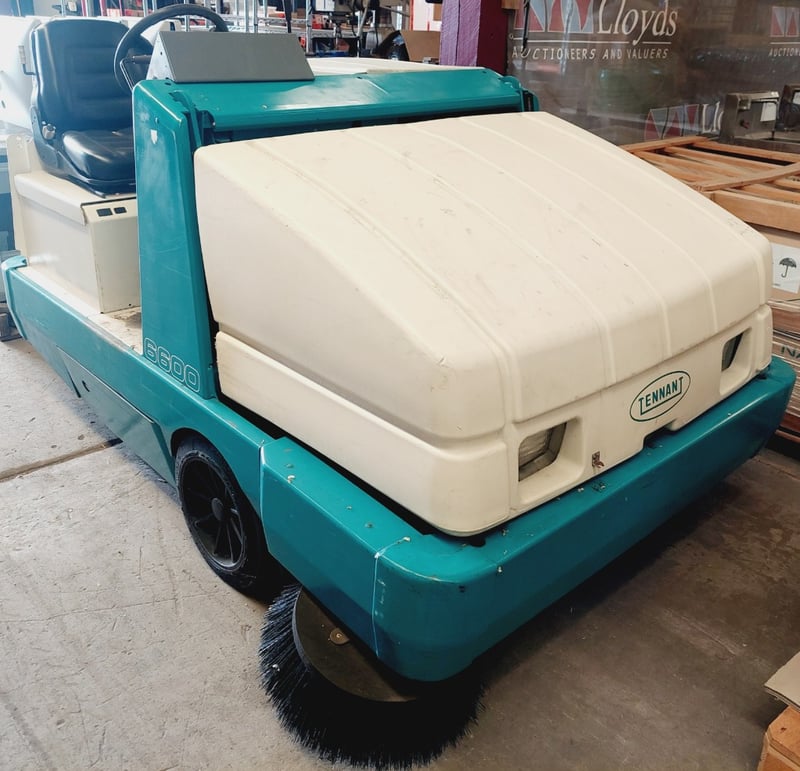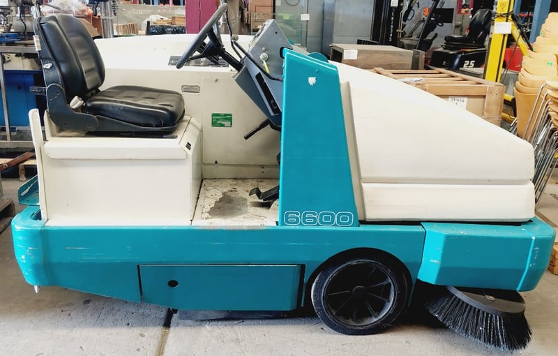 Tennant 6600 industrial ride-on floor sweeper.Note: item is untested, signs of wear.