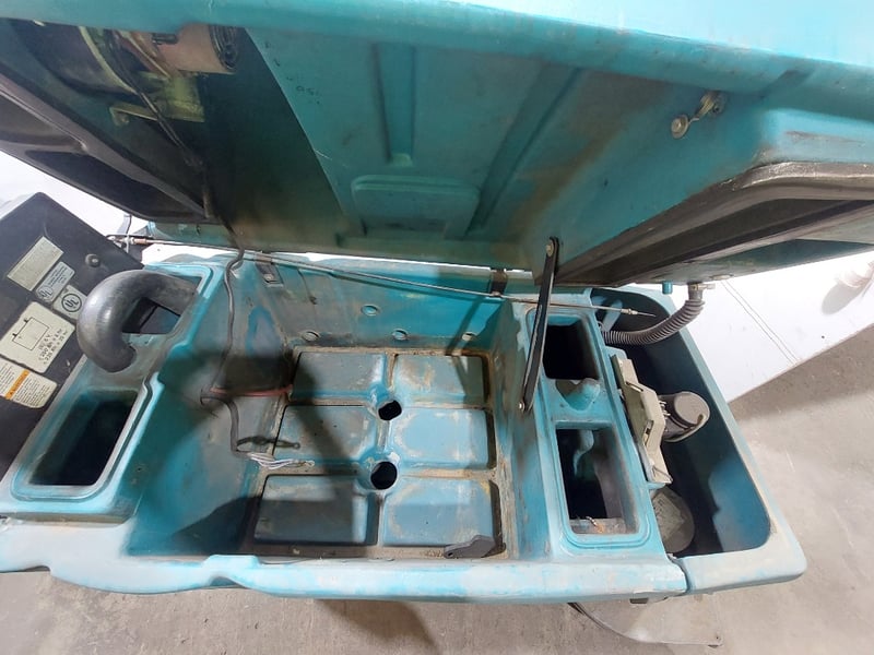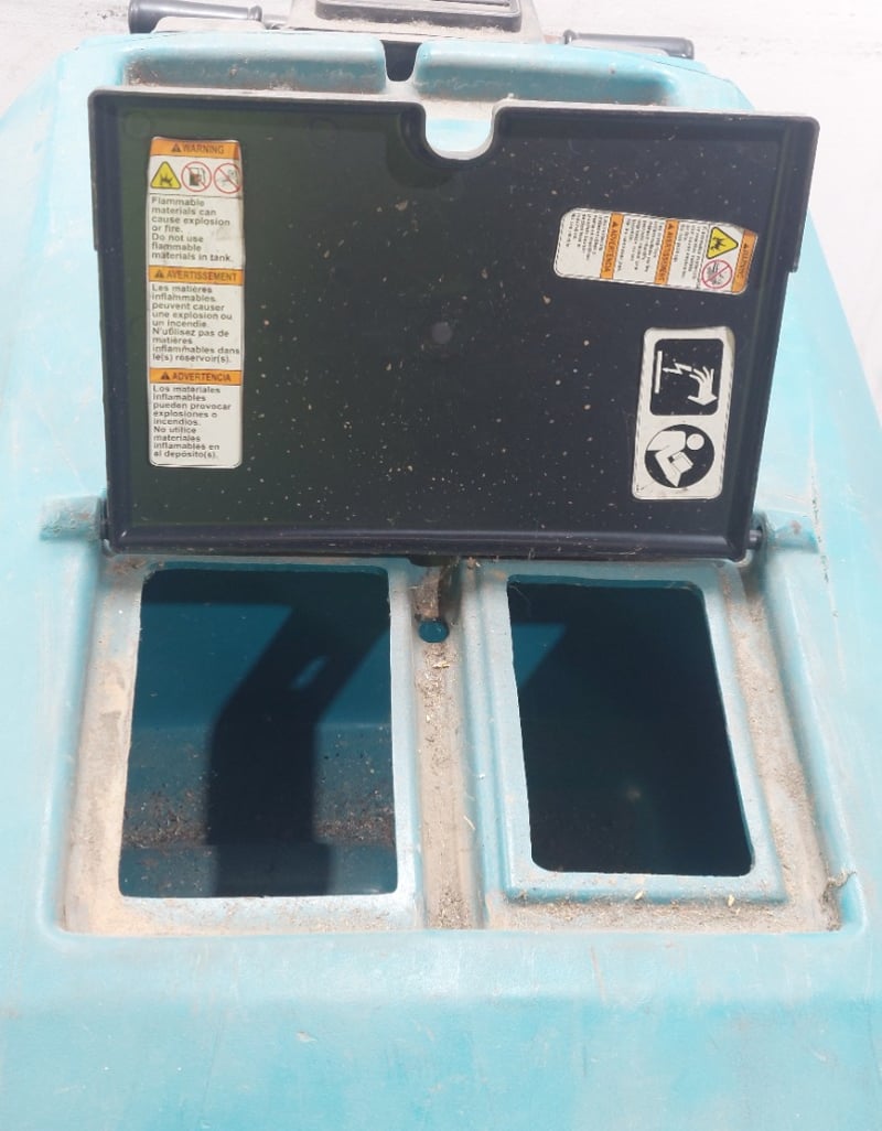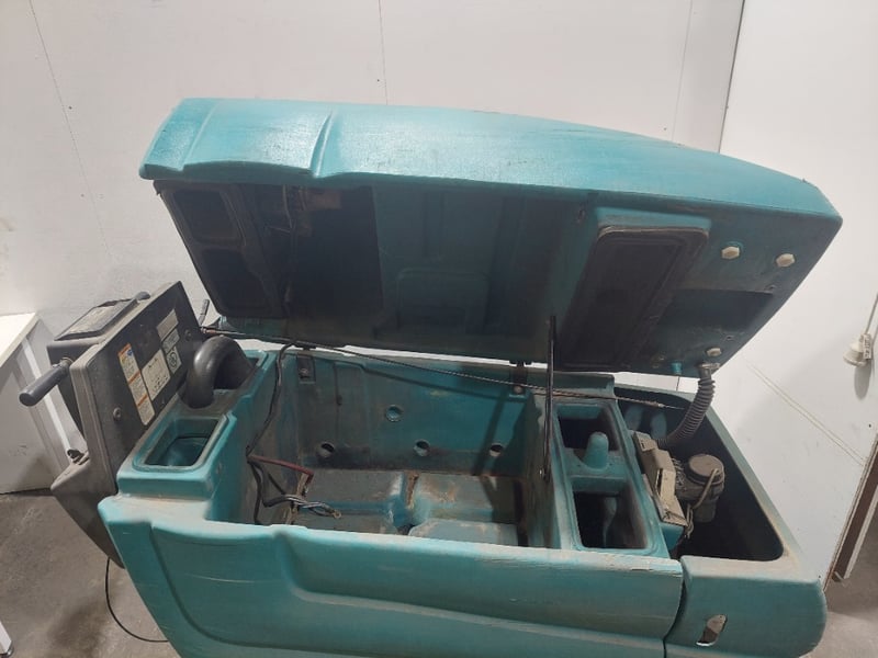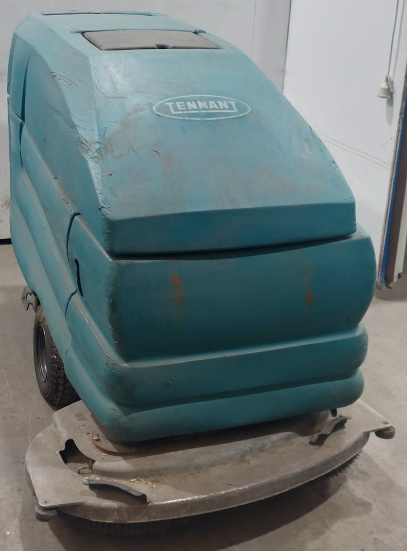 Tennant walk-behind floor scrubber.