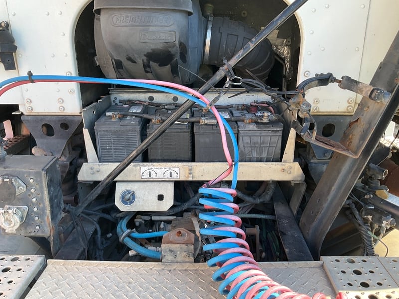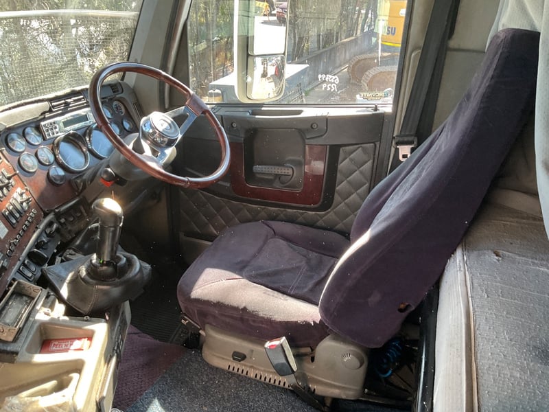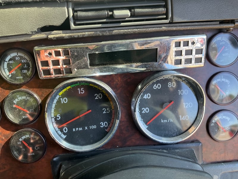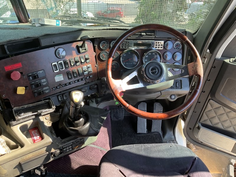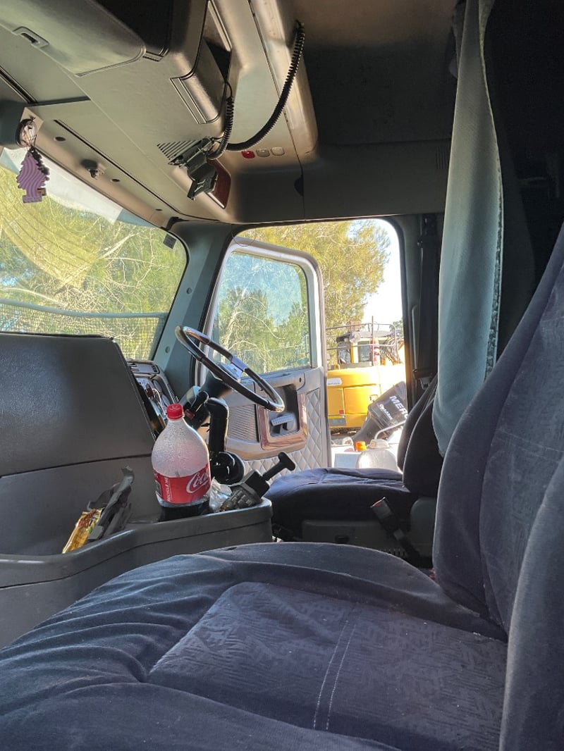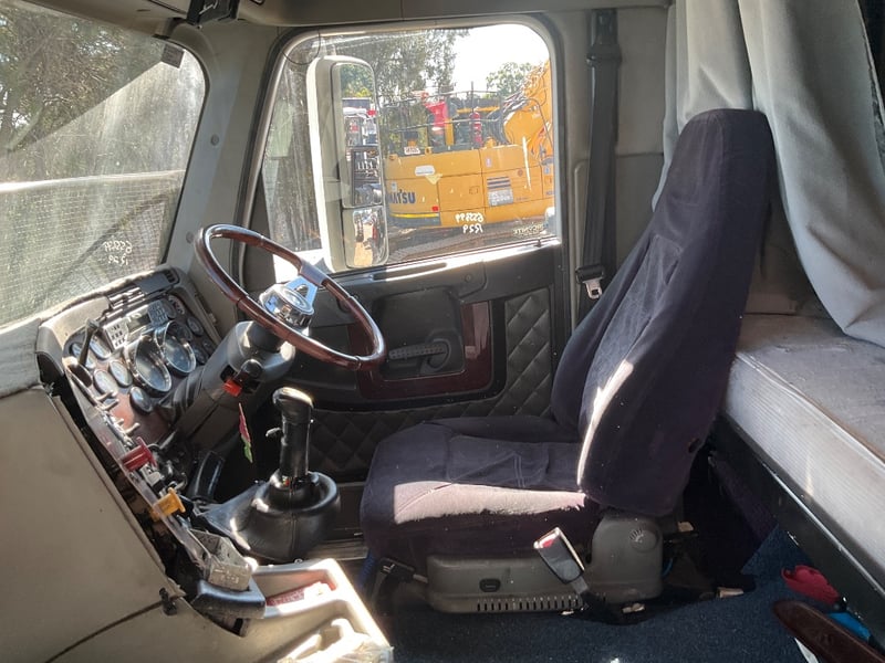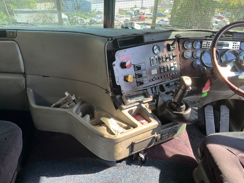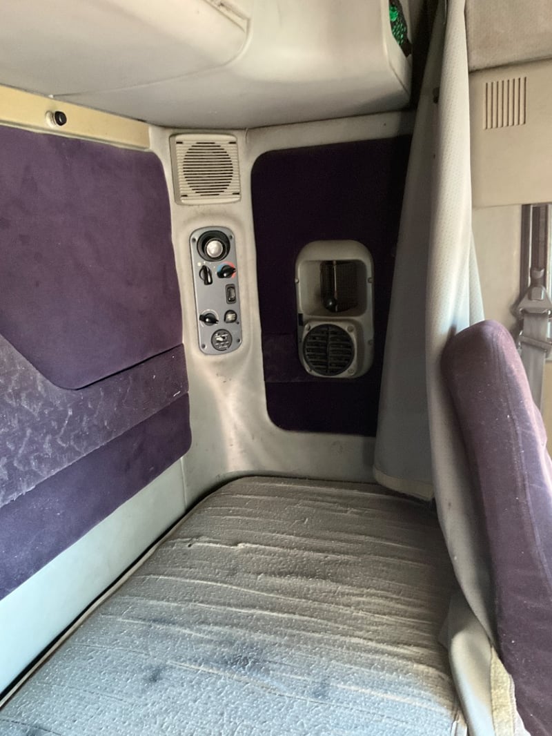 Description: Repo vehicle, unable to get power to cabin, dash appears to have been pulled apart, cab has a single sleeper, cd player, UHF radios, pull across curtain