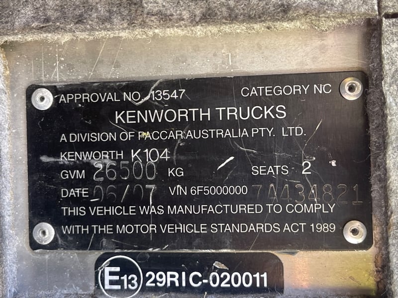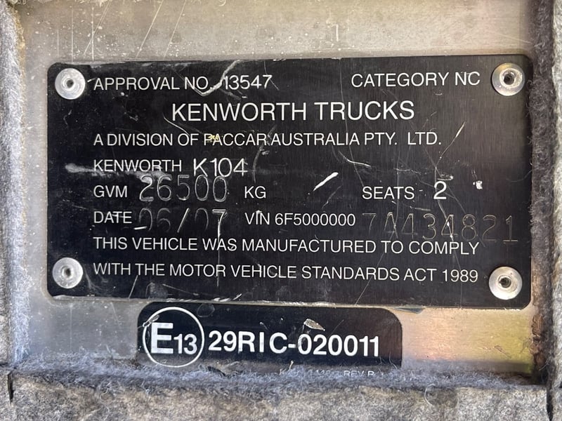 2007 Kenworth K104B Cab Over Sleeper 6x4 Prime Mover