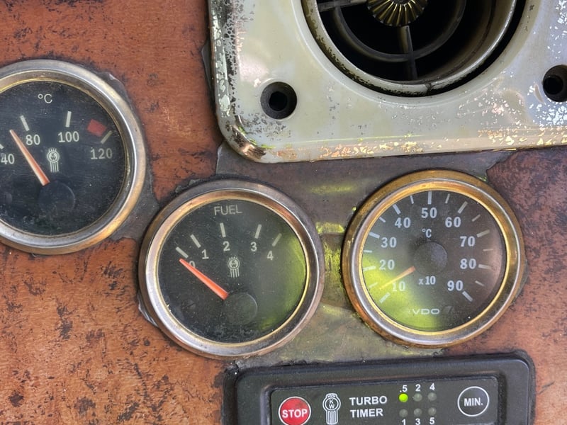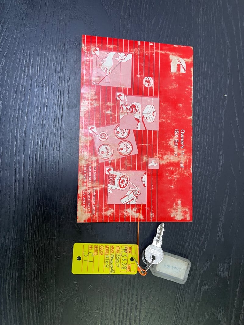 breaks caged off, buttons damaged, will need a jump start to turn over.
