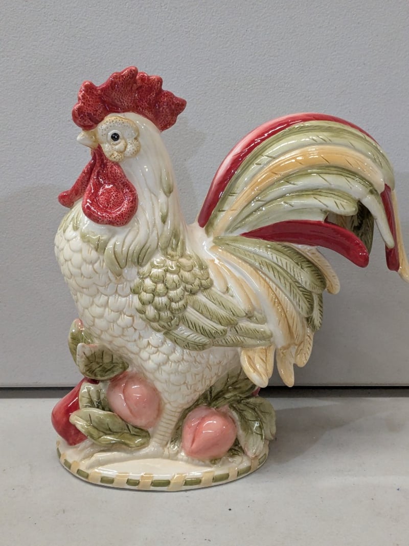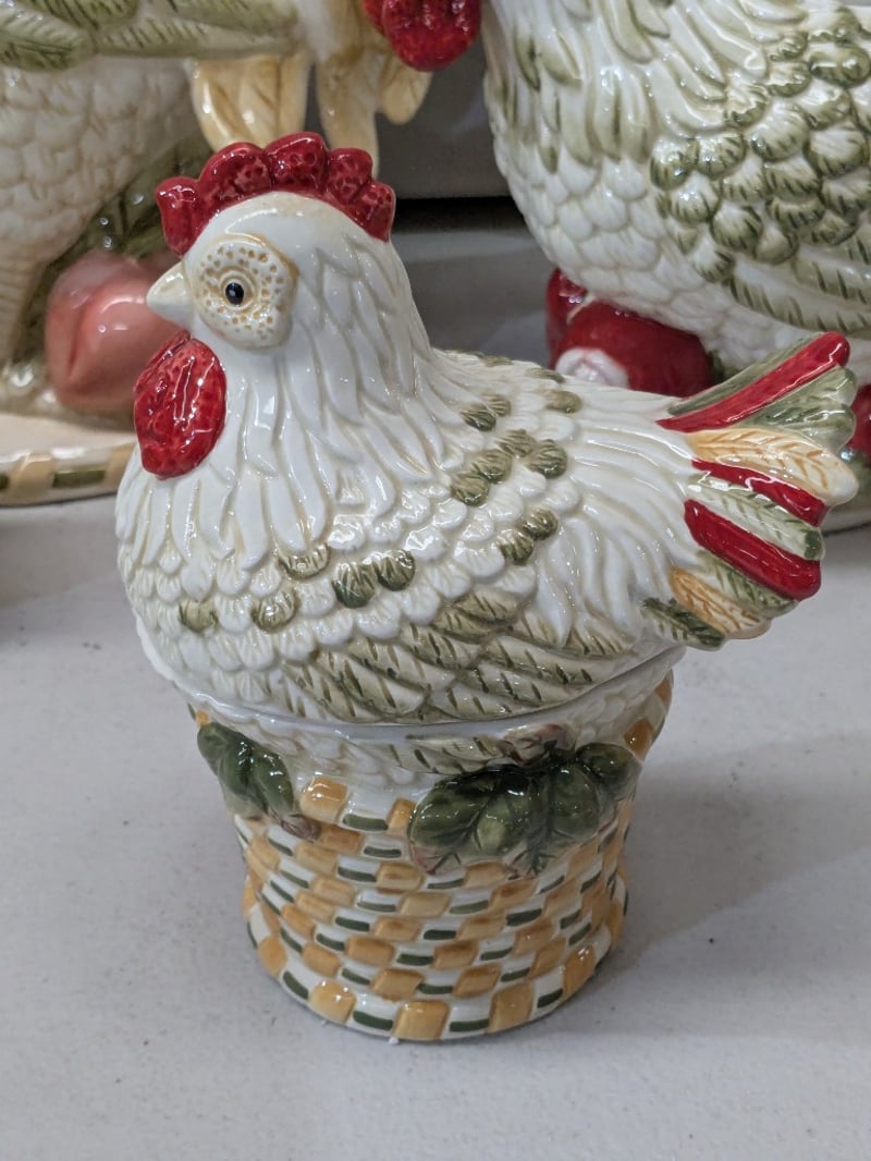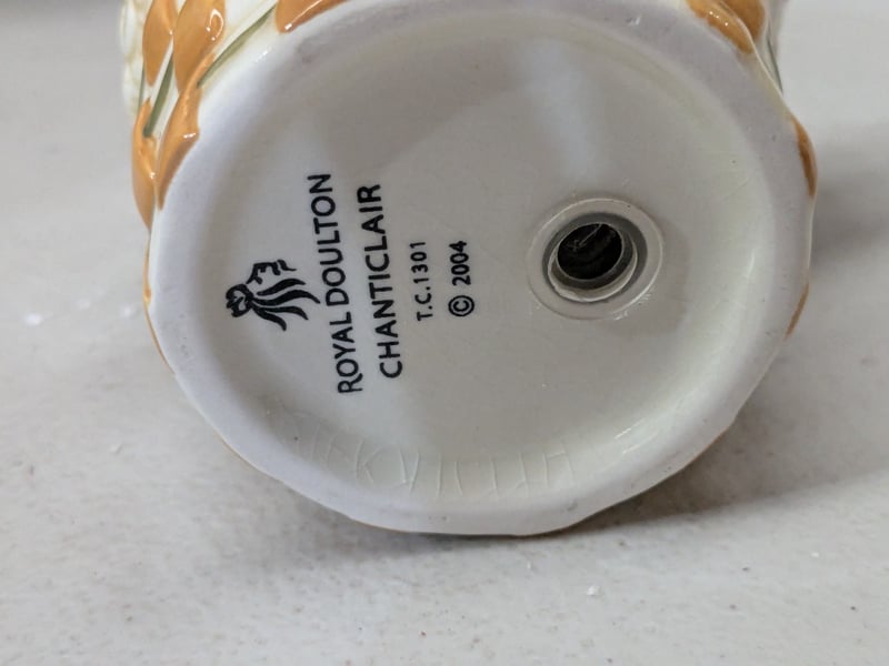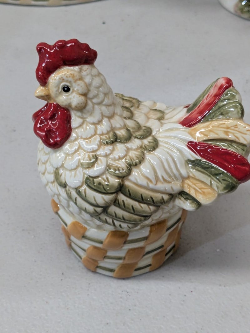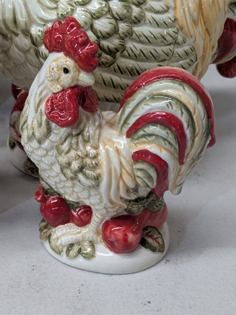 ROYAL ALBERT "ELIZABETH OF GLAMIS" LIMITED EDITION PORCELAIN COLLECTION WITH ROYAL DOULTON CHANTICLAIR TUREEN COLLECTION Exceptional Fine Bone China Collection Comprising Royal Albert "Elizabeth Of Glamis" Plate (Plate No. 6917E) From The Queen Mother'S Favourite Flowers Series, Limited To 150 Firing Days, With Certificate Of Provenance. Features Hand-Painted Coral Roses By Artist Sara Anne Schofield. Accompanied By Royal Doulton Chanticlair Ceramic Tureen (2004) With Woven Basket Base And Removable Lid, Plus Four Decorative Rooster Figurines In Cream, Red And Green Glazes With Basket-Weave Bases. The Collection S Condition: Good - Refer To Images 584584+23