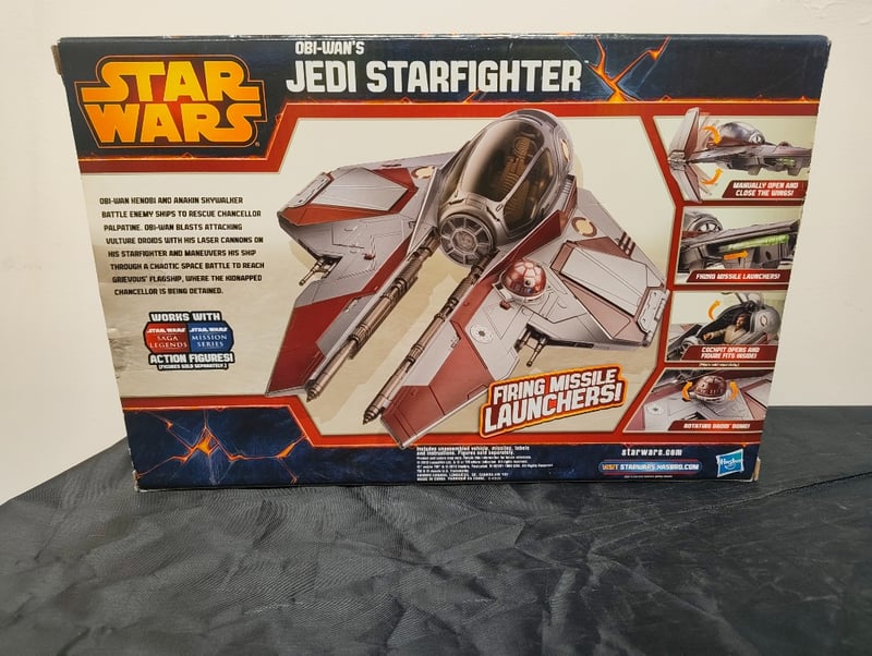 OBI-WAN'S JEDI STARFIGHTER STAR WARS ACTION VEHICLE PLAYSETHasbro Star Wars Obi-Wan'S Jedi Starfighter Vehicle Playset Featuring Firing Missile Launchers, Manually Opening/Closing Wings, Retractable Landing Drones, And Cockpit Opening Mechanism.Condition: Good - Refer To Images584522+282