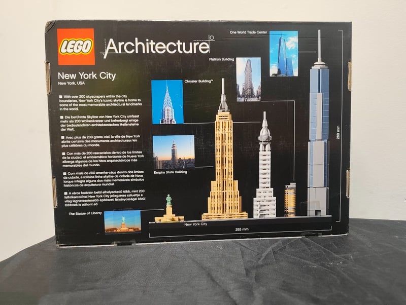 LEGO ARCHITECTURE NEW YORK CITY SET 21028Item Size: Height: 25.5cmLego Architecture New York City Set (21028) Featuring Iconic Manhattan Skyline Landmarks Including The Empire State Building, Chrysler Building, One World Trade Center, And Flatiron Building. Includes Statue Of Liberty Figurine. Set For Ages 12+. Approximately 645 Pieces. Includes Instruction Booklet With Design And Historical Details In Multiple Languages.Condition: Good - Refer To Images584526+23