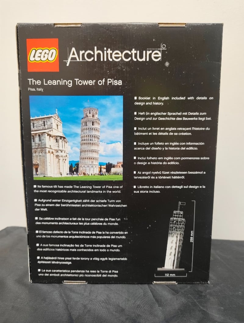 LEGO ARCHITECTURE THE LEANING TOWER OF PISA SET 21015Item Size: Height: 29.8cm, Width: 11.8cmLego Architecture Set 21015 Featuring A Detailed White Brick Model Of Italy'S Famous Leaning Tower Of Pisa With Its Characteristic Tilt. Includes Decorative Base Platform And Italian Flag. Set Designed By Adam Reed Tucker For The Landmark Series. Suitable For Ages 12+. Contains Informational Booklet In Multiple Languages With Historical Details And Design Specifications.Condition: Good - Refer To Images584526+24
