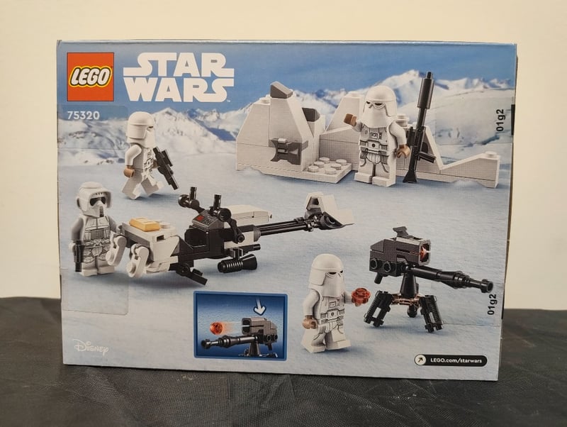 LEGO STAR WARS SNOWTROOPER BATTLE PACK #75320Lego Star Wars Set 75320 Featuring Snowtrooper Battle Pack With Four Minifigures (Three Snowtroopers And One Scout Trooper), Two Buildable Weapon Stations With Rotating Cannons, Snow Fortification Elements, And Assorted Accessories Including Blasters And Thermal Detonator. Age Rating 6+. Includes Instruction Manual.584526+27