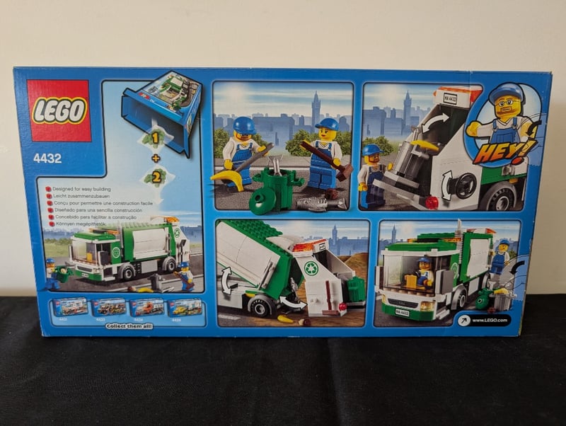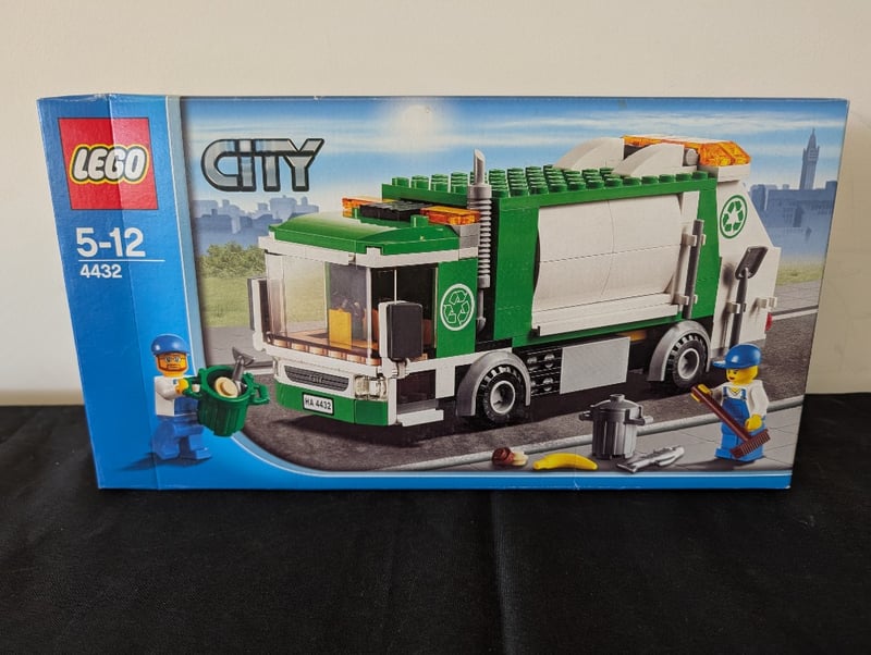 LEGO CITY GARBAGE TRUCK SET 4432Item Size: Height: 35cm, Width: 35cm, Depth: 35cm, Weight: 2KgVintage Lego City Garbage/Refuse Truck (Set 4432) Featuring A Green And White Motorized Collection Vehicle With Functional Tipping Mechanism, Complete Original Packaging With Intact Box Art Showing New York City Skyline Backdrop, Includes Two Minifigures With Construction Apparel, Designed For Ages 5-12, Comprehensive Instruction Manual Visible On Reverse Packaging, Exemplifies Early 2000S Lego City Municipal Vehicle Series With Detailed Cab Design And Operational Waste Bin Lift System.Condition: Good - Refer To Images584530+175