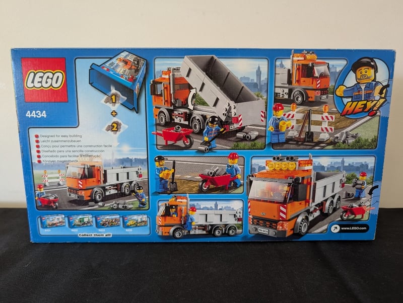 LEGO CITY CONSTRUCTION DUMP TRUCK SET 4434Item Size: Height: 35cm, Width: 35cm, Depth: 35cm, Weight: 2KgLego City Construction Set Featuring An Orange And White Dump Truck With Tilting Cargo Bed, Articulated Chassis, And Detailed Cab With Working Cab Windows. Includes Two Minifigures (Construction Worker And Operator), Red Wheelbarrow, Traffic Barriers, And Assorted Accessories. Set 4434, Designed For Ages 5-12. Box Shows Minor Wear Consistent With Age And Storage.Condition: Good - Refer To Images584530+176