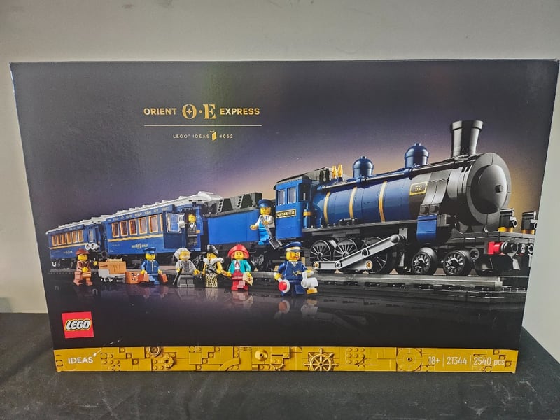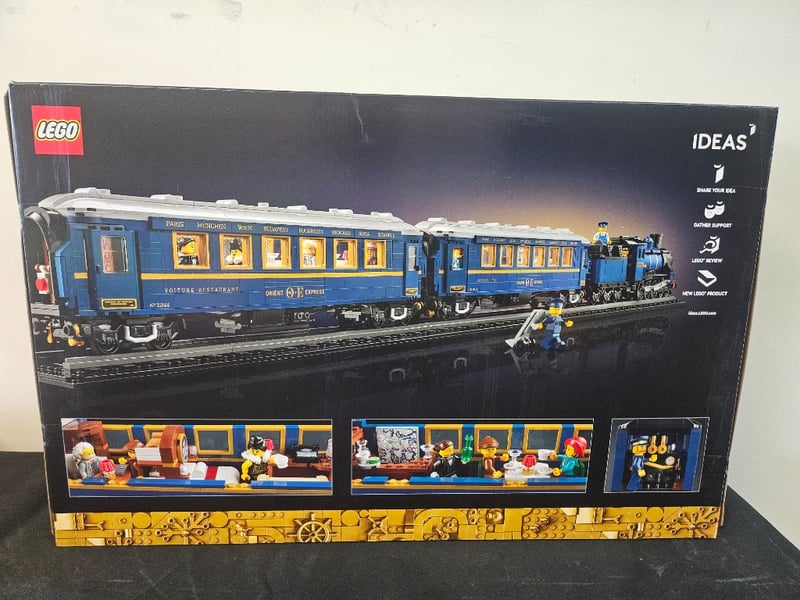 LEGO IDEAS ORIENT EXPRESS TRAIN SET #21344Lego Ideas #21344 Orient Express Passenger Train Set Featuring Detailed Blue And Gold Locomotive With Steam Engine, Two Passenger Cars With Interior Seating And Dining Areas, Eight Minifigures, Motorized Track System, And 2540 Pieces. Includes Authentic Period Details And Functional Moving Components.Condition: Good - Refer To Images584547+43