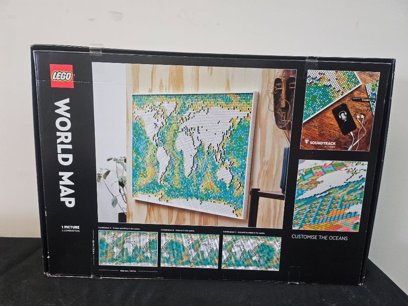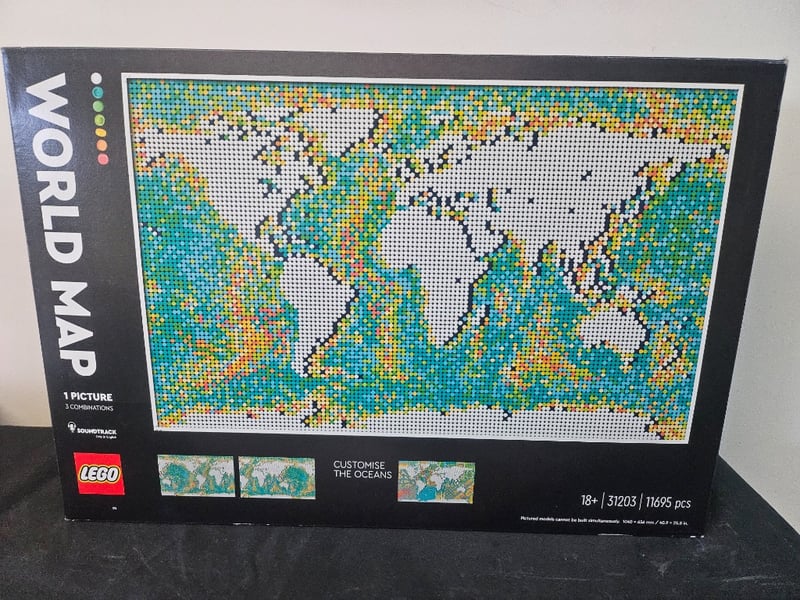 LEGO WORLD MAP ART SET 31203 - CUSTOMISABLE OCEAN MOSAIC PICTURELego World Map Art Set Featuring 11,695 Pieces In Turquoise, White, Yellow, And Orange Tones. Customisable Mosaic Design With Ocean Theme Variations. Includes 8-Track Soundtrack. Adult-Rated Set (18+) With Frame-Ready Display FormatCondition: Good - Refer To Images584547+44
