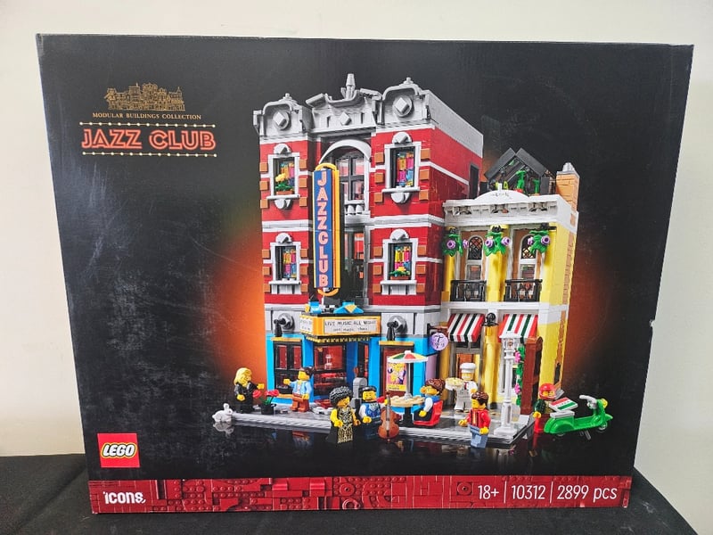 LEGO ICONS JAZZ CLUB MODULAR BUILDING SET 10312Lego Icons Modular Buildings Collection Jazz Club (Set 10312) Featuring 2,899 Pieces. Detailed Architectural Model Depicting A Vibrant Jazz Club Storefront With Red Brick Facade, Yellow Adjacent Building, And Blue Ground-Level Entrance. Includes Multiple Minifigures And Intricate Interior Details Across Four Levels. Part Of The Prestigious Lego Icons Series Designed For Adult CollectorsCondition: Good - Refer To Images584547+47