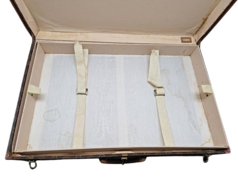 LOUIS VUITTON MONOGRAM CANVAS STEAMER TRUNK WITH LEATHER TRIM Item Size: Height: 22cm, Width: 80cm, Depth: 52cm, Weight: 15Kg Condition: Good - Refer To Images 582916+1