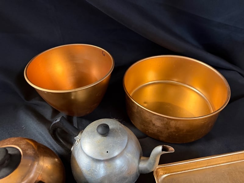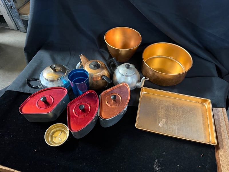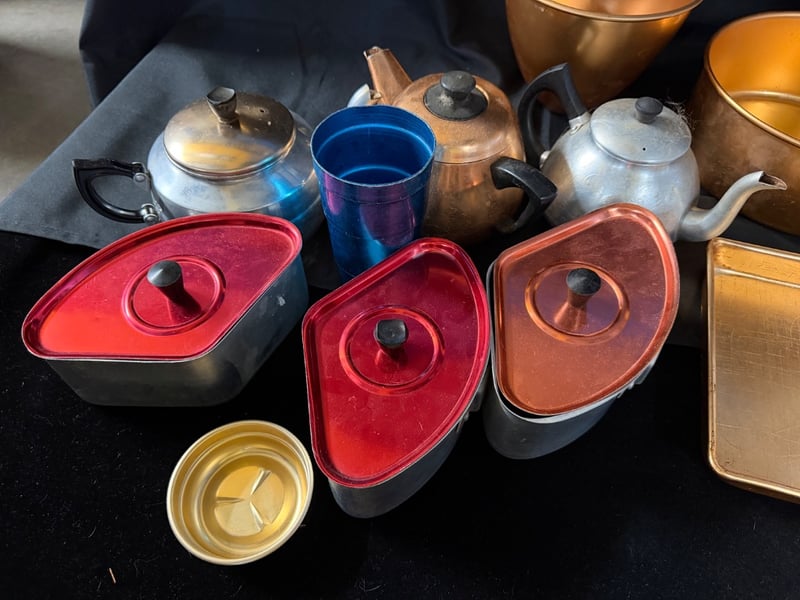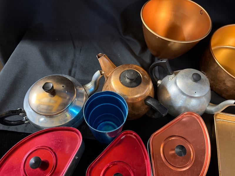 MID-CENTURY ANODIZED ALUMINIUM STYLE KITCHENWARE AND TABLEWARE Condition: Good - Refer To Images 584520+94