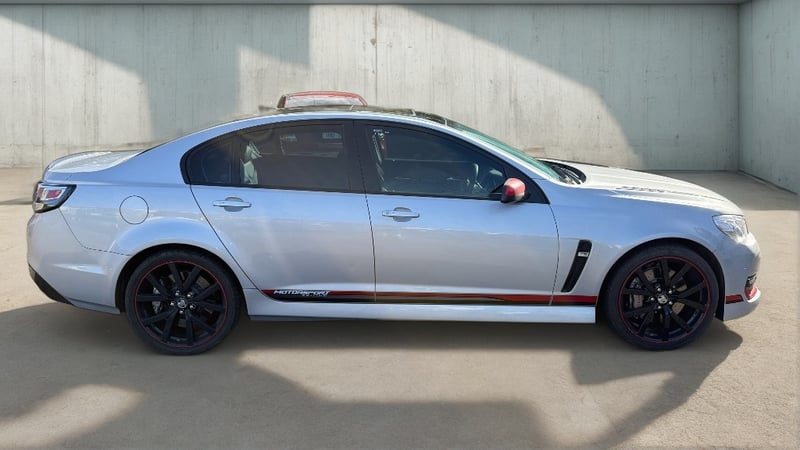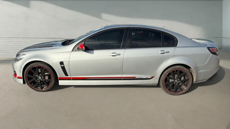 Seven thousand six hundred kilometres. This One Owner Commodore has barely turned a wheel since new. The Motorsport Edition was a limited-production variant of the final VF SS, adding a distinctive appearance package to the LS3 V8 platform: Motorsport side skirt graphics in red/black gradient, red mirror caps, red pinstripe detailing on the satin black multi-spoke wheels, red accent gauge rings in the instrument cluster, and push-button start. In Nitrate Silver the package looks sharp and purposeful. The LS3 6.2-litre V8 makes 317kW and this example has barely been run in. Log books are included. Low-mileage late-model V8 Commodores are disappearing fast as the collector market moves on them. This one is essentially a time capsule.
