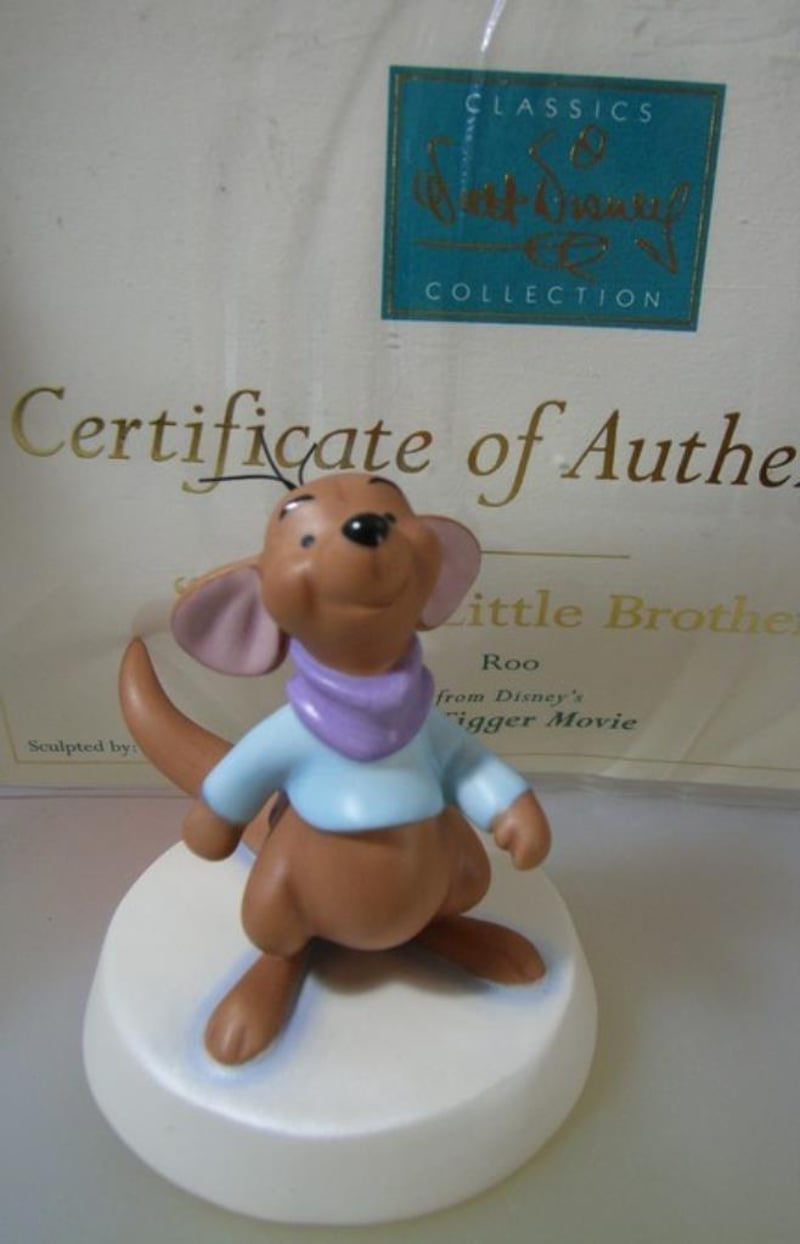 CLASSICS WALT DISNEY COLLECTION TIGGER FROM “TIGGER MOVIE” CLASSICS WALT DISNEY COLLECTION ROO FROM “TIGGER MOVIE”Bountiful Buddy 6575/7500 Limited Edition Bestest Litle Brother 6575/7500 Limited Edition Porcelain Figurines Size: 13 x 6cm Diam Base 7 x 6cm Diam BaseCondition: Good - Refer To Images233675+6