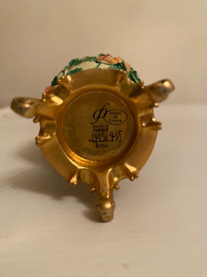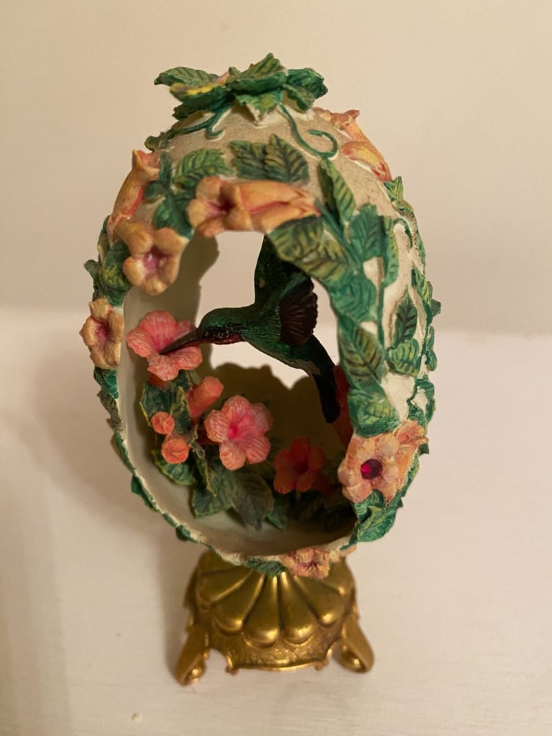 FABERGE EGG - ORNATELY FLORALLY DECORATED CUT OPEN TO SHOW A HUMMINGBIRD FEEDING Condition: Good - Refer To Images 657068+3