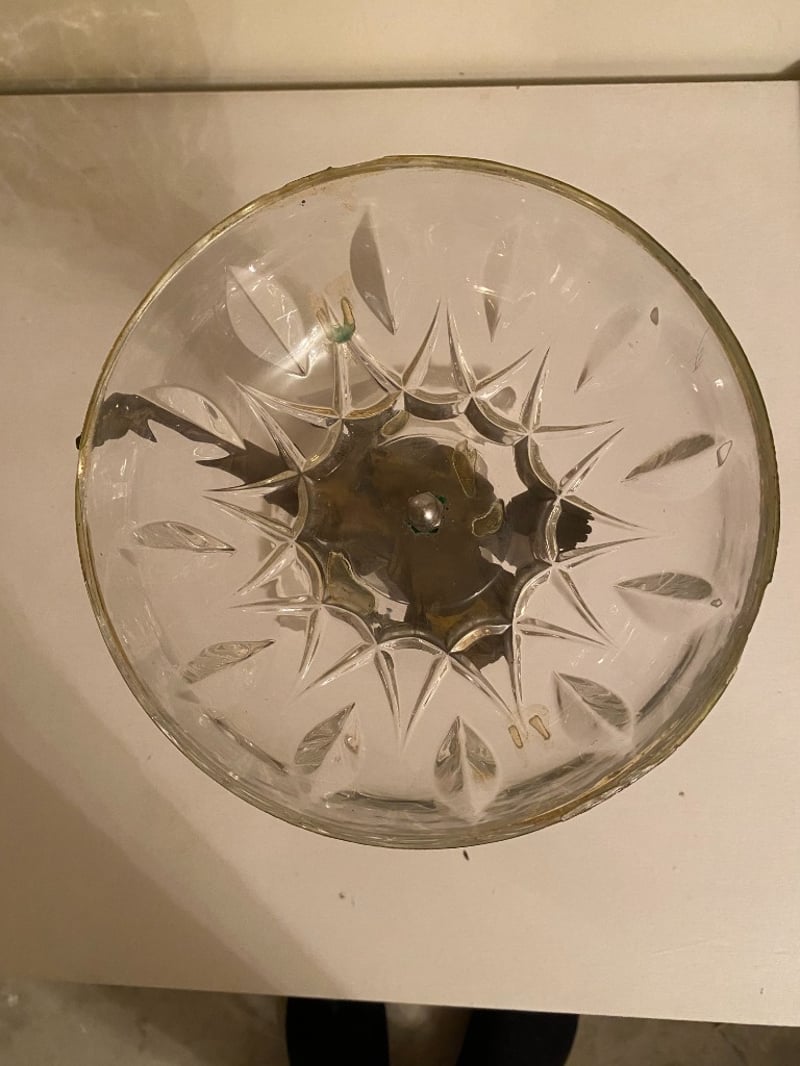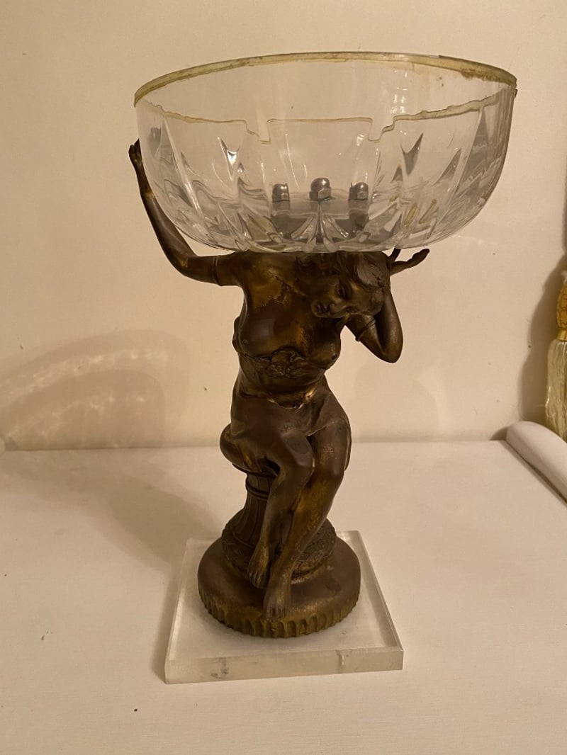 BRASS LADY STATUE SITTING ON A STOOL HOLDING A GLASS PUNCH BOWL Condition: Good - Refer To Images 657068+14