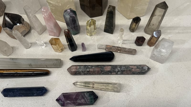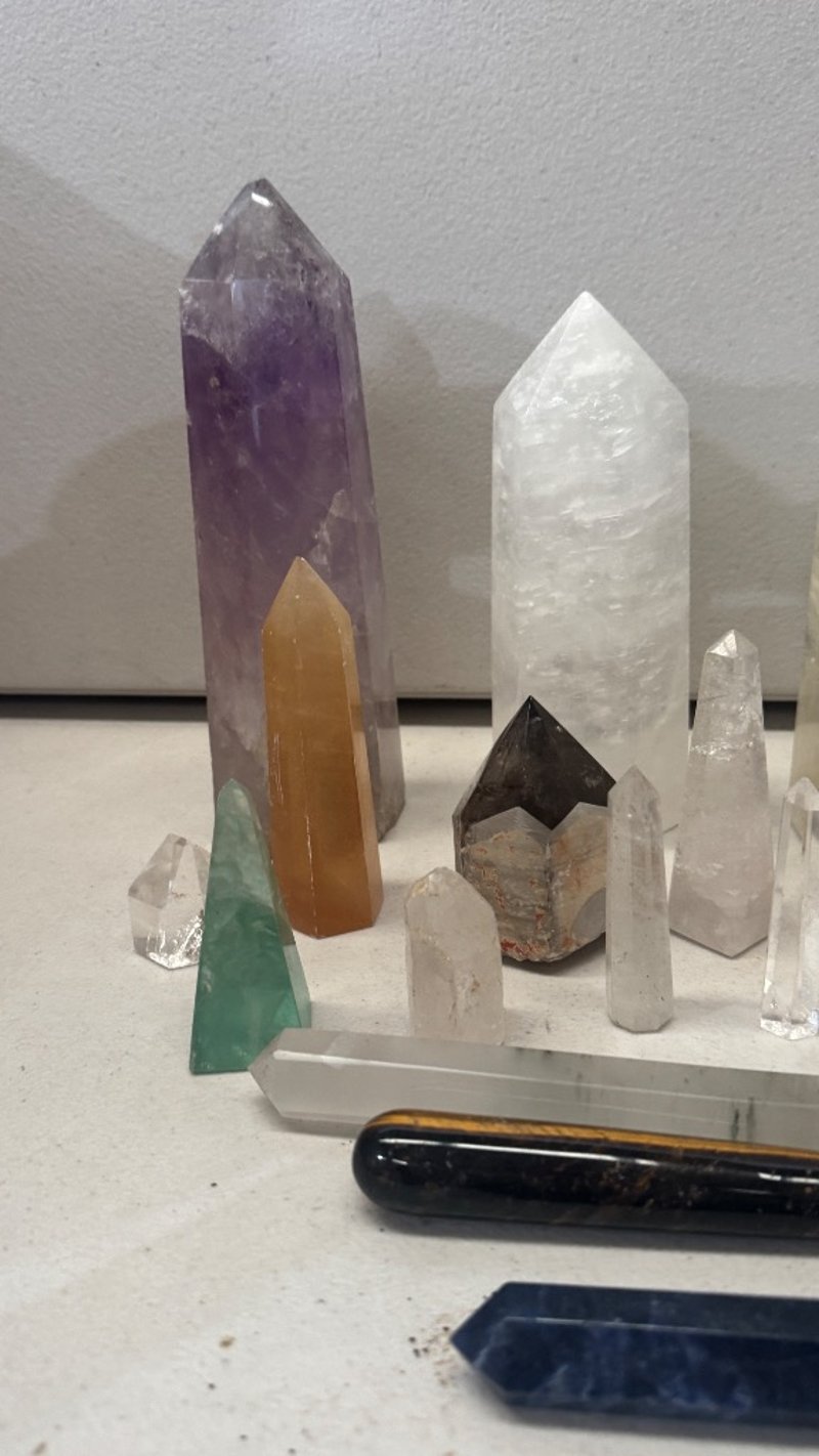 COLLECTION OF POLISHED CRYSTAL POINTS AND MINERAL SPECIMENS