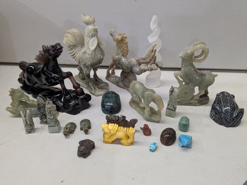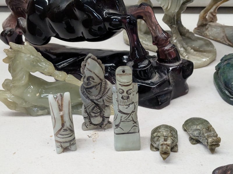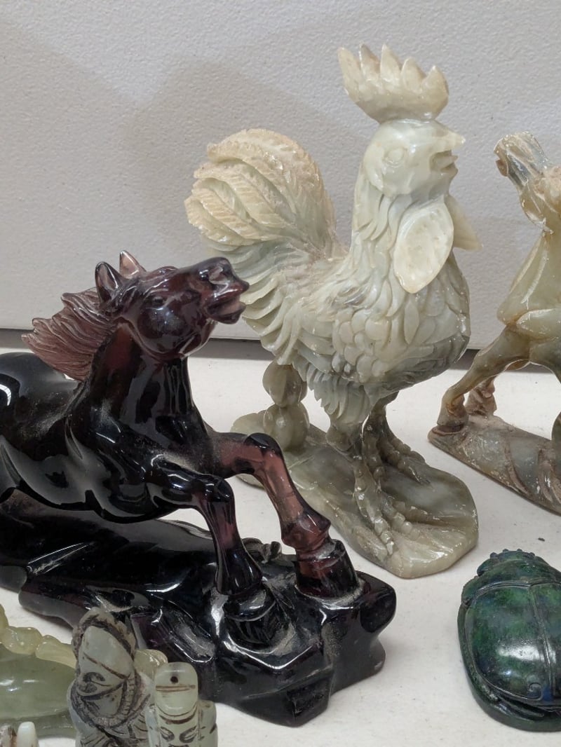 COLLECTION OF ASIAN CARVED STONE AND JADE FIGURINES
