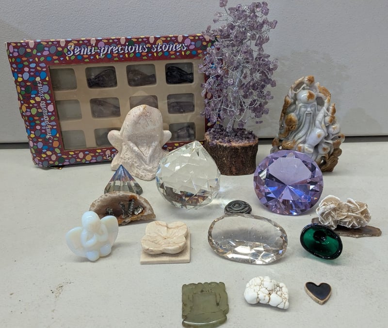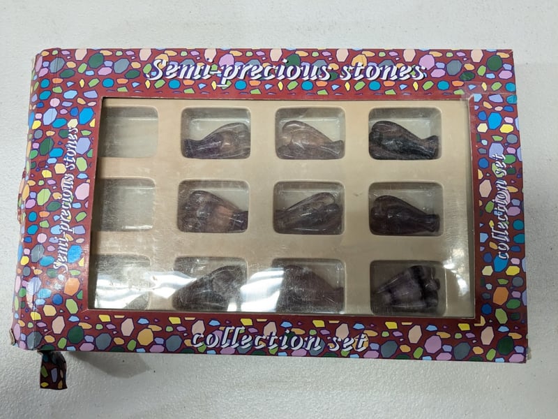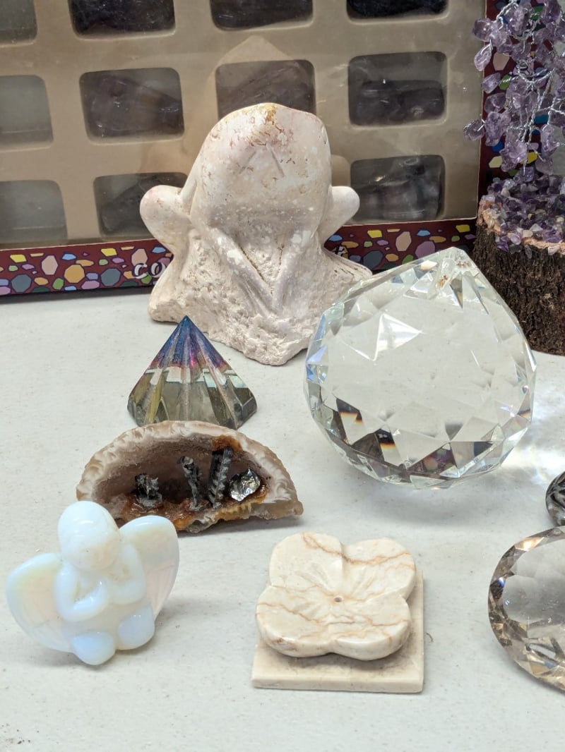 Includes Semi-Precious Stones Collection Set With Display Specimens, Oversized Faux Gems, Jadeite Figurines, Etc