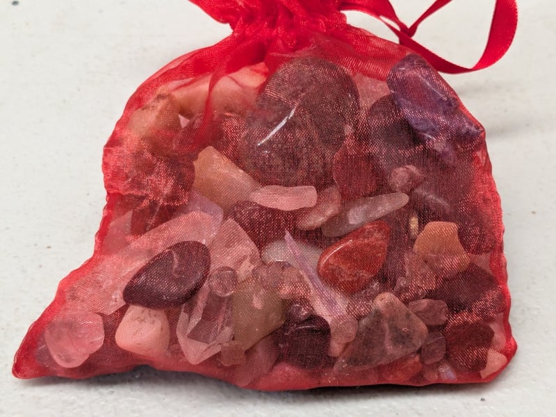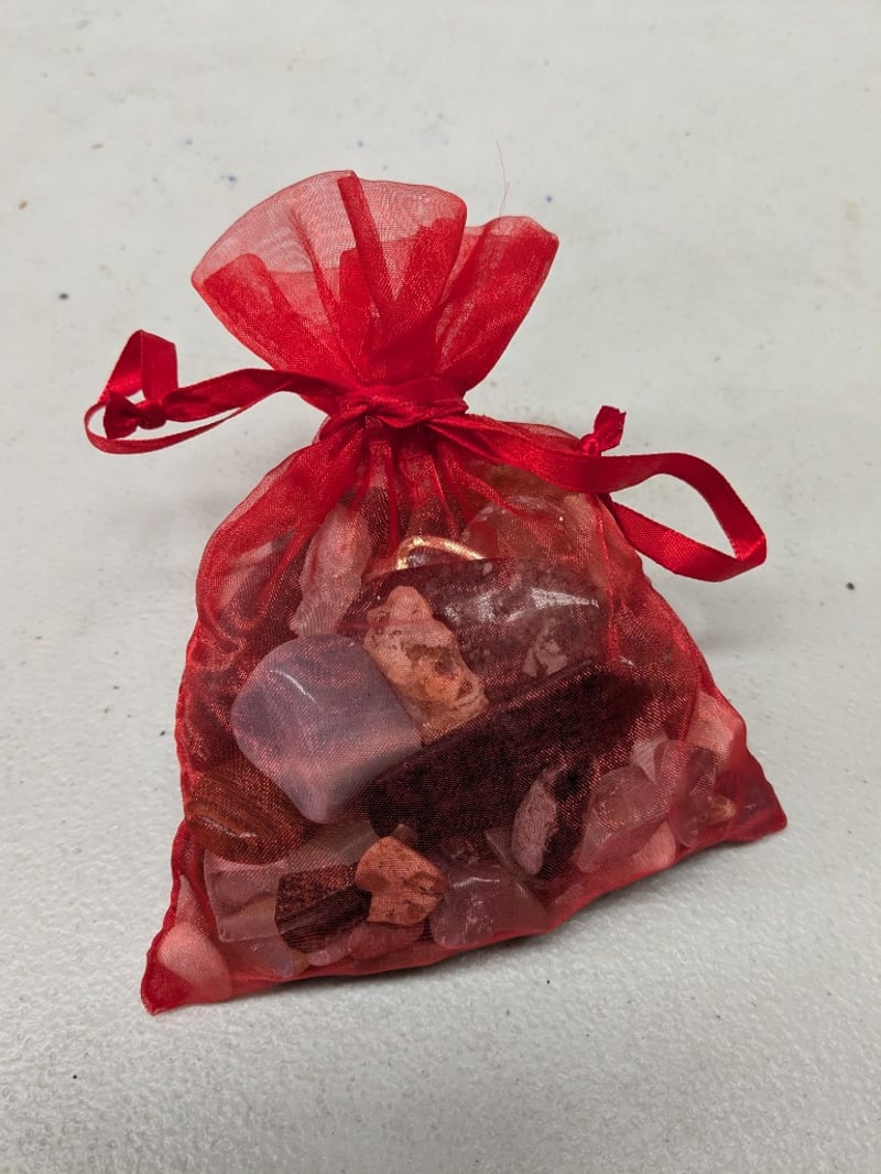 RED ORGANZA GIFT BAG WITH ASSORTED GEMSTONE CONTENTS Condition: Good - Refer To Images 584584+19